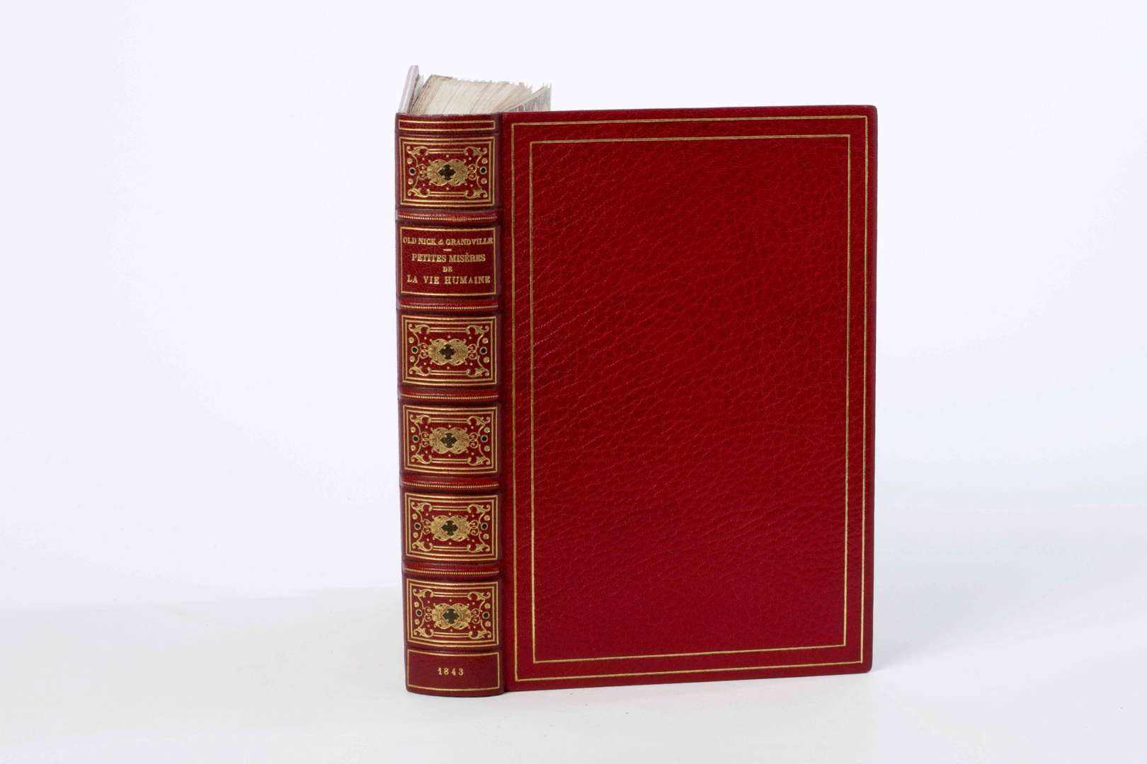 Paris, H. Fournier, 1843. In-8, maroquin rouge, dos à 5 nerfs saillants ornés d'un pointillé doré, auteurs, titre et date dorés, caissons ornés de fers dorés et mosaïqués, double filet doré bordant les plats, filet doré aux coupes, contreplat bordé de maroquin orné de 3 filets, une roulette et fleurons angulaires, le tout doré, tranches dorées sur témoins, étui assorti [Pouillet] (lég. frott. à l'étui, qq. rousseurs).
