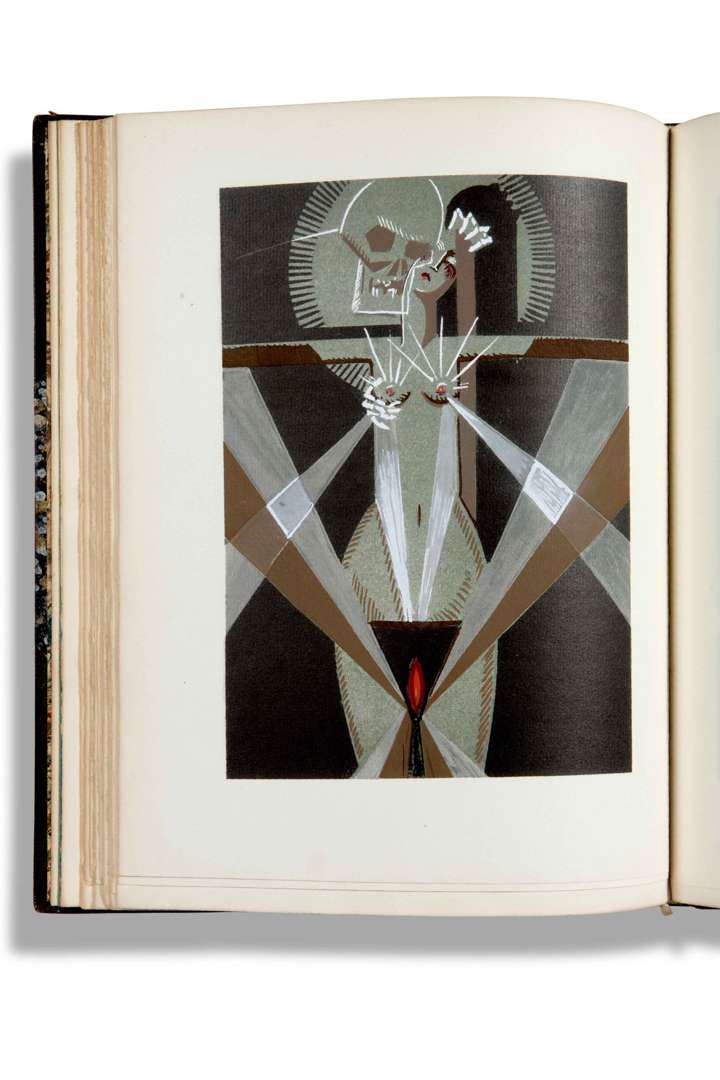Splendide ouvrage illustré de 20 grandes compositions à pleine page, et d'une vignette sur la couverture, rehaussées de couleurs au pochoir. C'est le livre majeur du peintre et illustrateur Yan Bernard Dyl (1887-1944), l'un des membres éminents du mouvement Art déco.