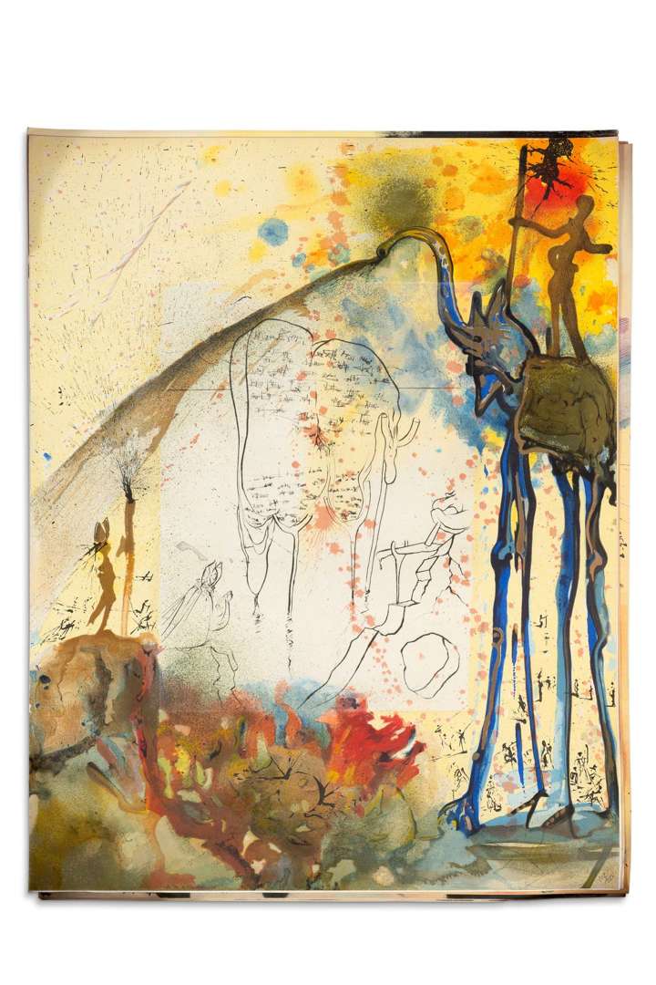 L'illustration principale se compose de 10 estampes originales en couleurs de Salvador Dali, tirées sur peau d'agneau. Chacune, de 64,5 x 50 cm., est signée par le peintre.