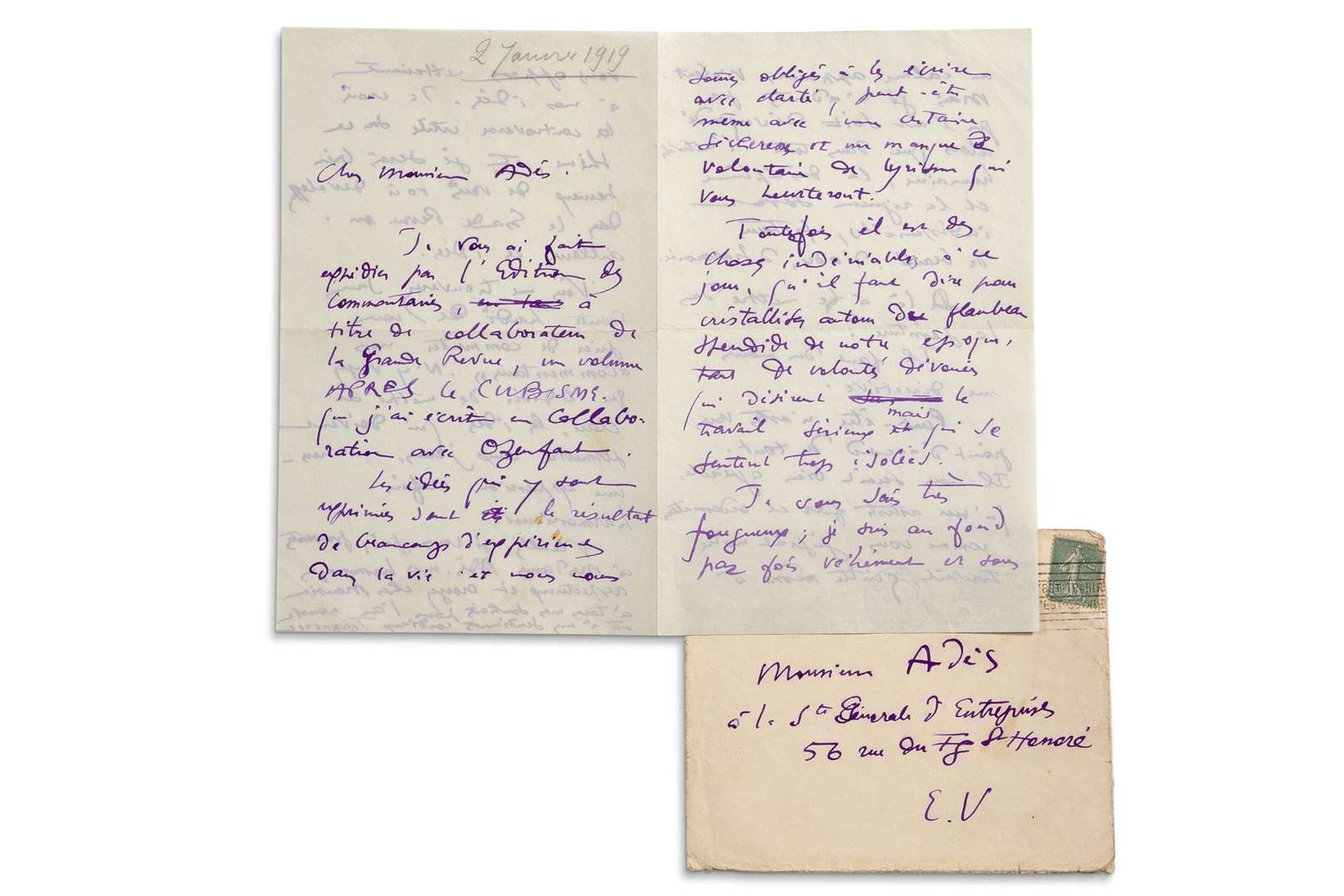 LE CORBUSIER Édouard Jeanneret, dit (1887 - 1965) L.A.S. « Jeanneret », [Paris 2 janvier 1919], à Albert ADÈS| 4 pages in-8, enveloppe.