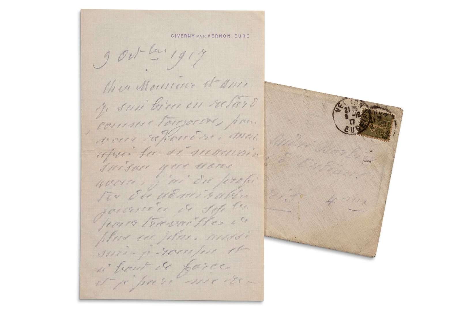 Giverny par Vernon, au crayon violet, enveloppe.
