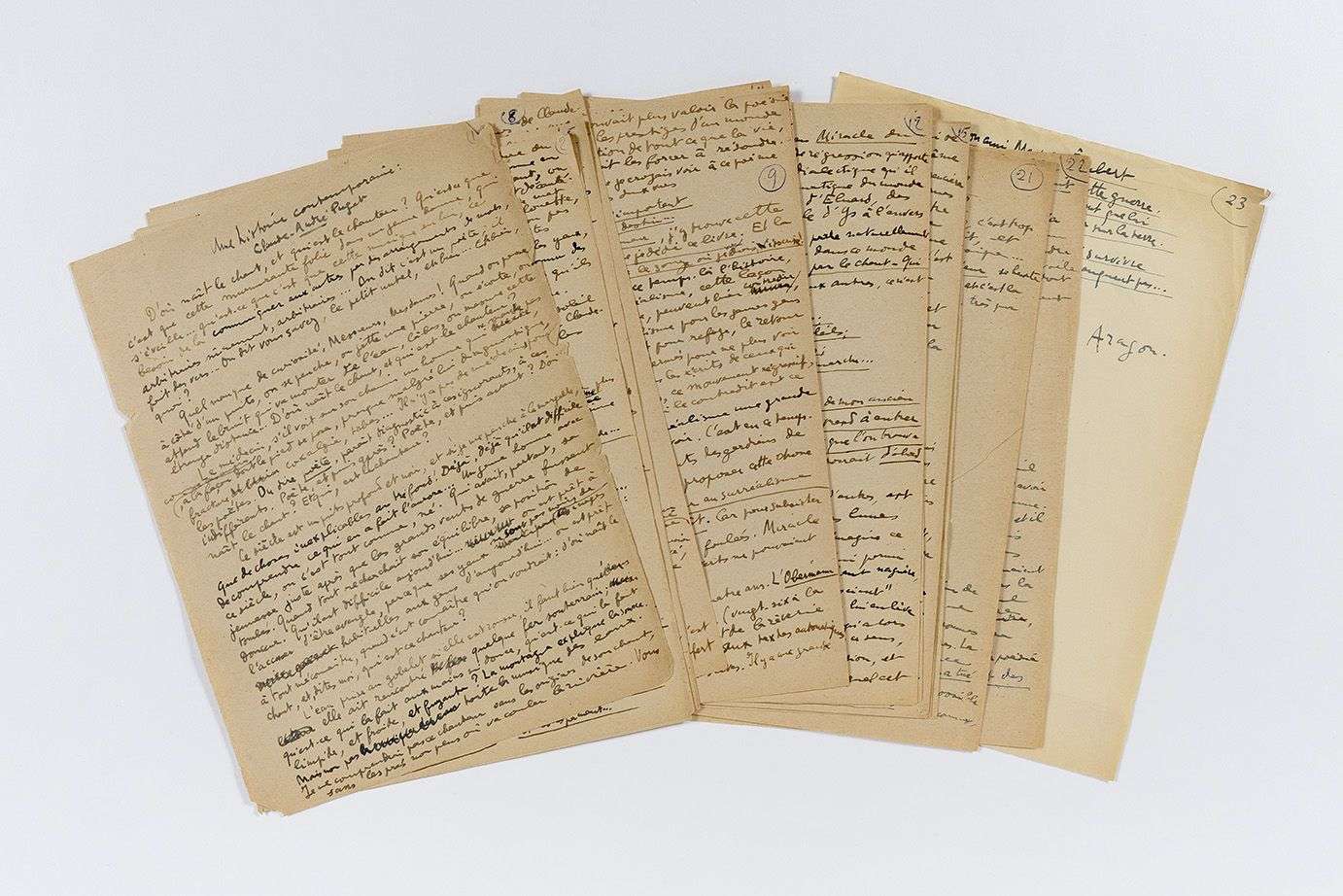 ARAGON Louis (1897 - 1982) MANUSCRIT autographe signé « Aragon », Une histoire contemporaine: Claude-André Puget, [1947]| 22 pages et demie in-4 (quelques bords légèrement effrangés).