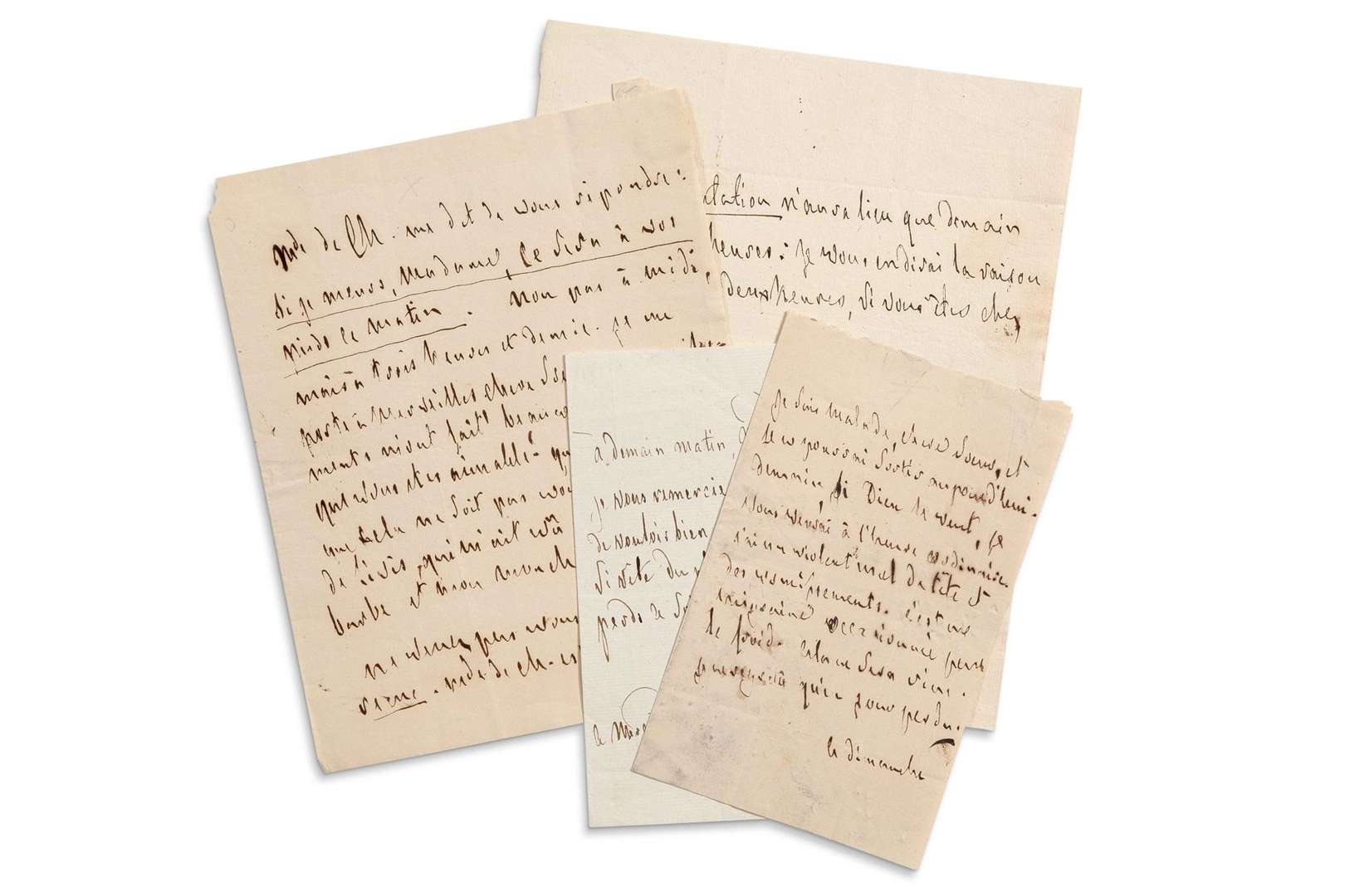 CHATEAUBRIAND François-René de (1768 - 1848) 4 L.A. (une signée d'un paraphe), [1808-1809 ?], à la duchesse de DURAS| demi-page in-4, 1 page in-4 et 2 pages in-8 avec adresses.