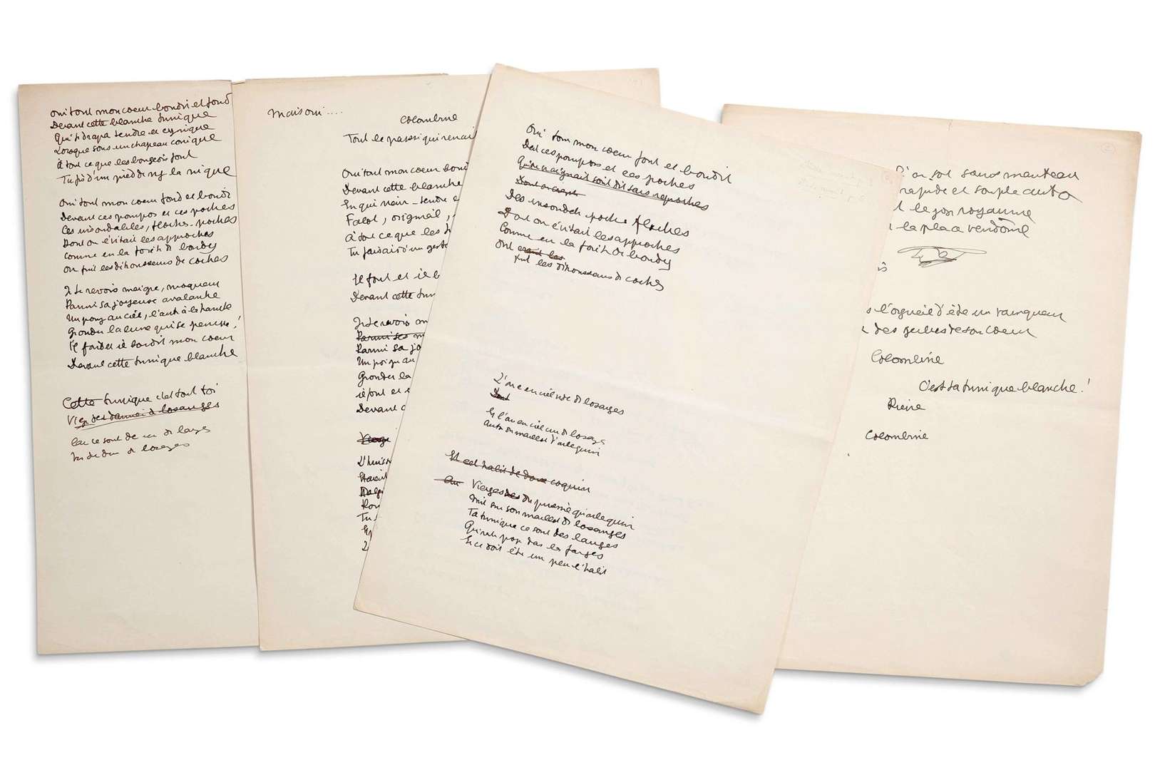 Brouillons de poèmes de jeunesse, avec ratures et corrections.