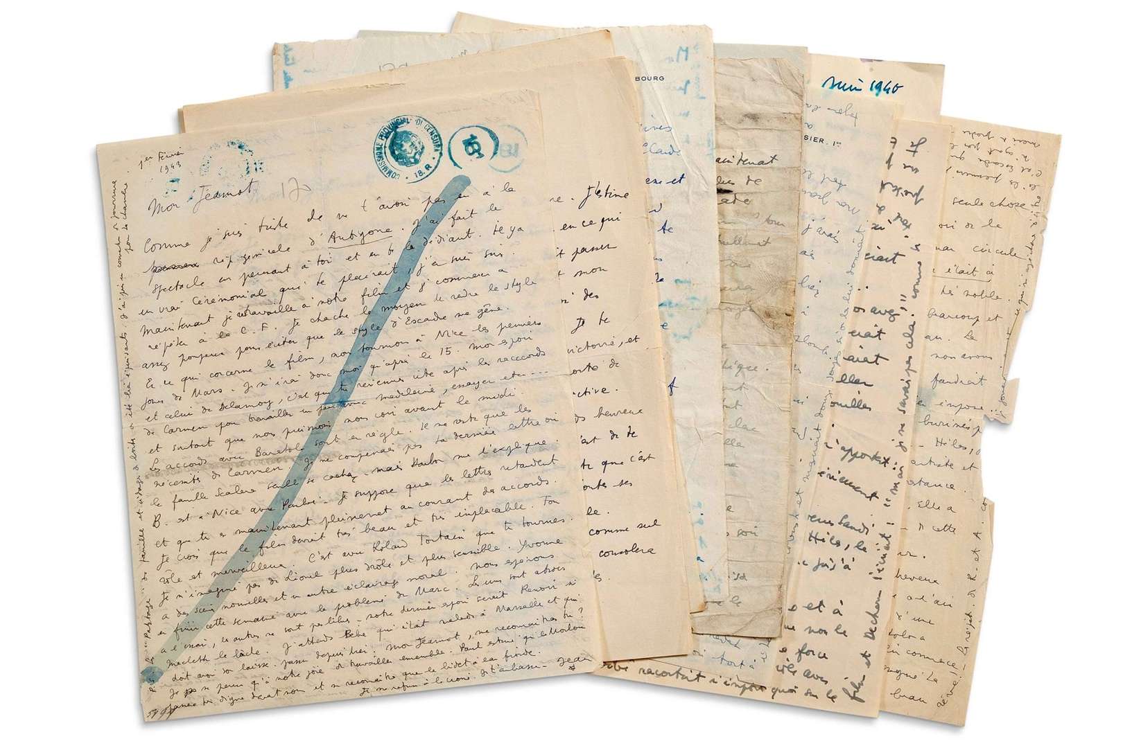 COCTEAU Jean (1889 - 1963) 10 L.A.S. « Jean » (une signée d'une étoile), 1940-1946 et s.d., à Jean MARAIS| 14 pages in-4 (défauts, mouillures à quelques lettres, une avec déchirures sur un bord), 2 lettres portent le cachet de la Commission de censure.