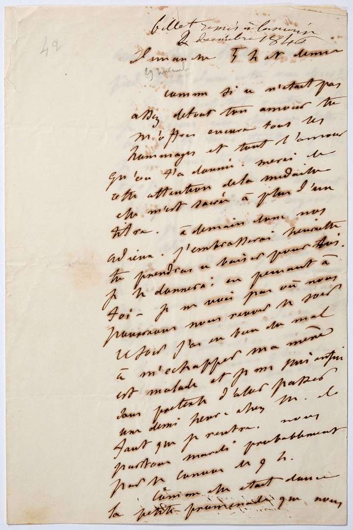 Une note de Louise Colet indique, en tête (avec une erreur de date): « billet remis à la main 2 décembre 1846 ».