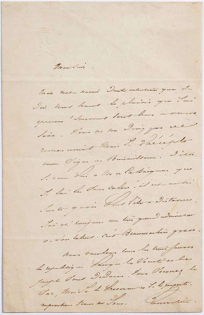 LAMARTINE Alphonse de (1790 - 1869) L.A.S. « Lamartine », [1848 ?, au docteur VÉRON]| 1 page in-8 à son chiffre couronné.