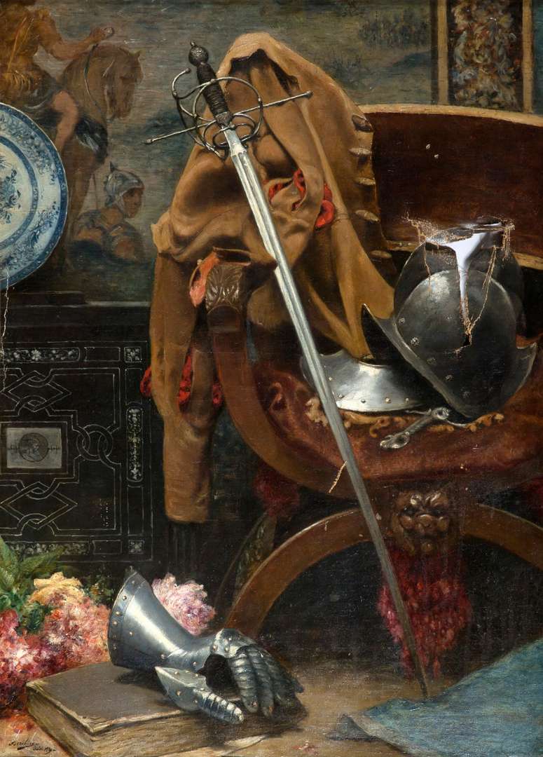 Intérieur aux armes et éléments d'armures, 1889
