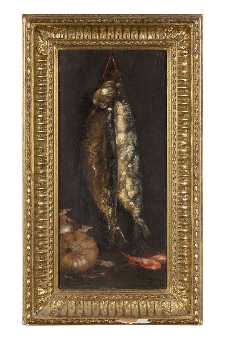 Nature morte aux harengs, crevettes et oignons