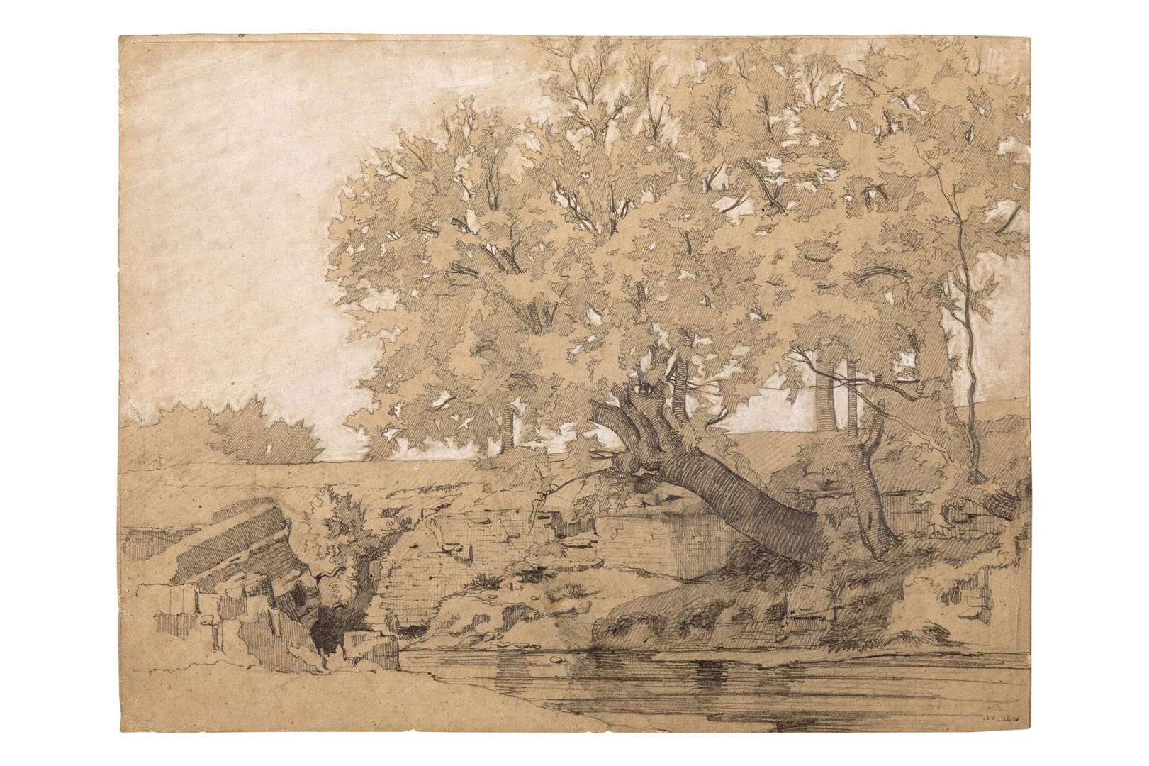 Graphite and white chalk on paper, stamped with the 'Vente/N. Berchère' mark lower right