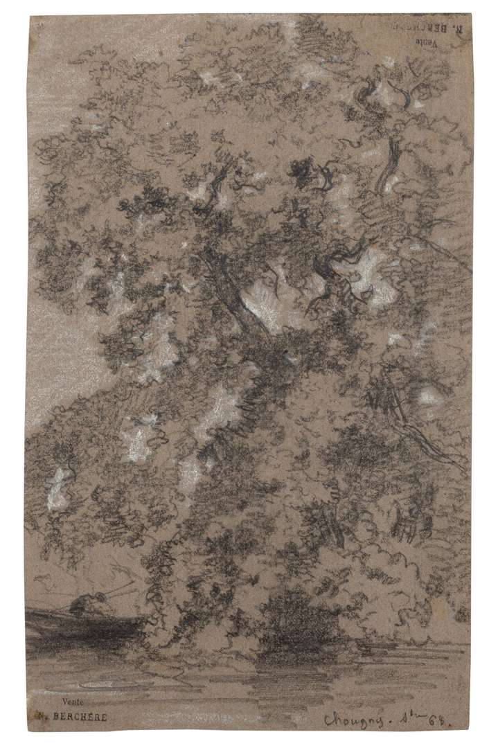 Graphite and white chalk on chamois paper, stamped with the 'Vente/N. Berchère' mark lower left, stamped again upper right, located and dated 'Sbre [18]68' lower right, a sketch of trees on the reverse