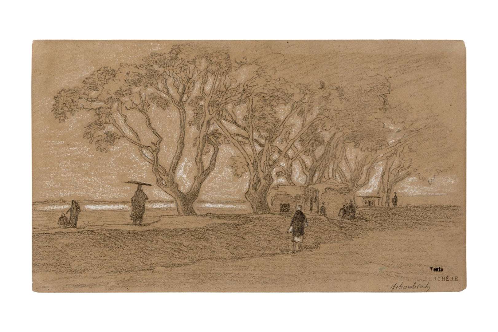 Graphite and white chalk on paper, stamped with the 'Vente N. Berchère' mark and located lower right