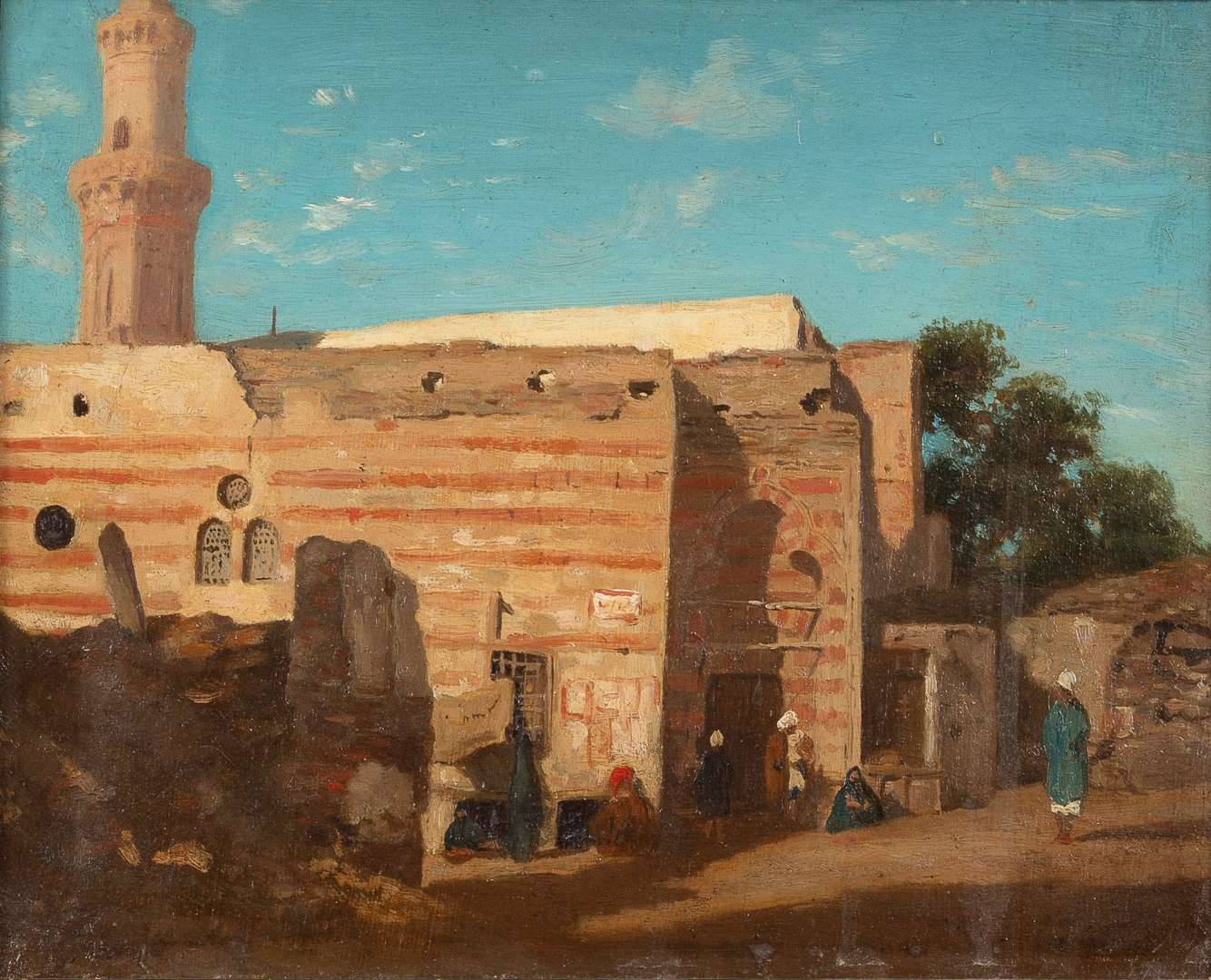 Personnages aux abords d'une mosquée