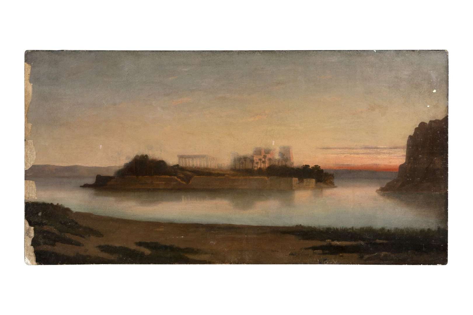 Huile sur panneau remployé avec inscription en arabe au dos