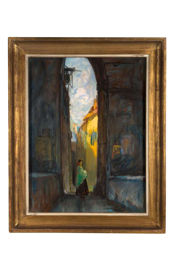 Pastel on toned paper, signed lower right