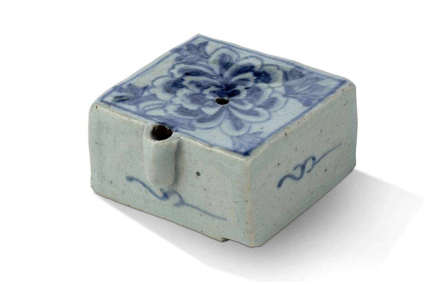De forme carrée, le dessus peint d'une pivoine et de feuillages.