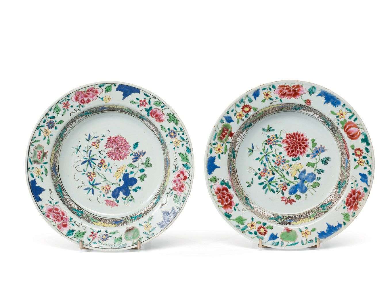 Paire d'assiettes creuses en porcelaine de la famille rose