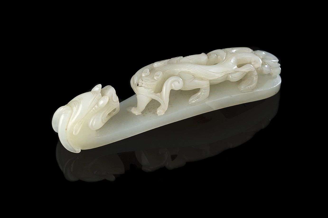 Sculptée à tête de dragon et chilong rampant.