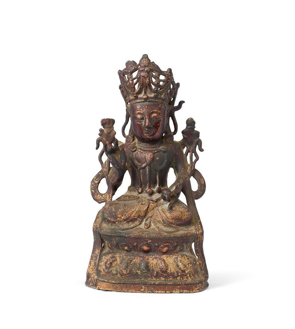 Statuette de bodhisattva en bronze laqué