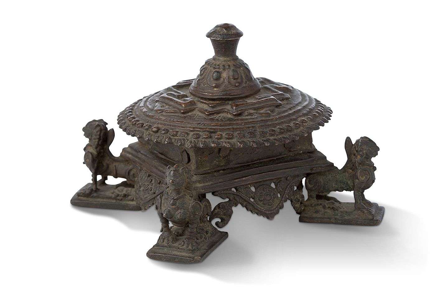 Le corps de forme circulaire surmontant une base carrée reposant sur quatre lions.