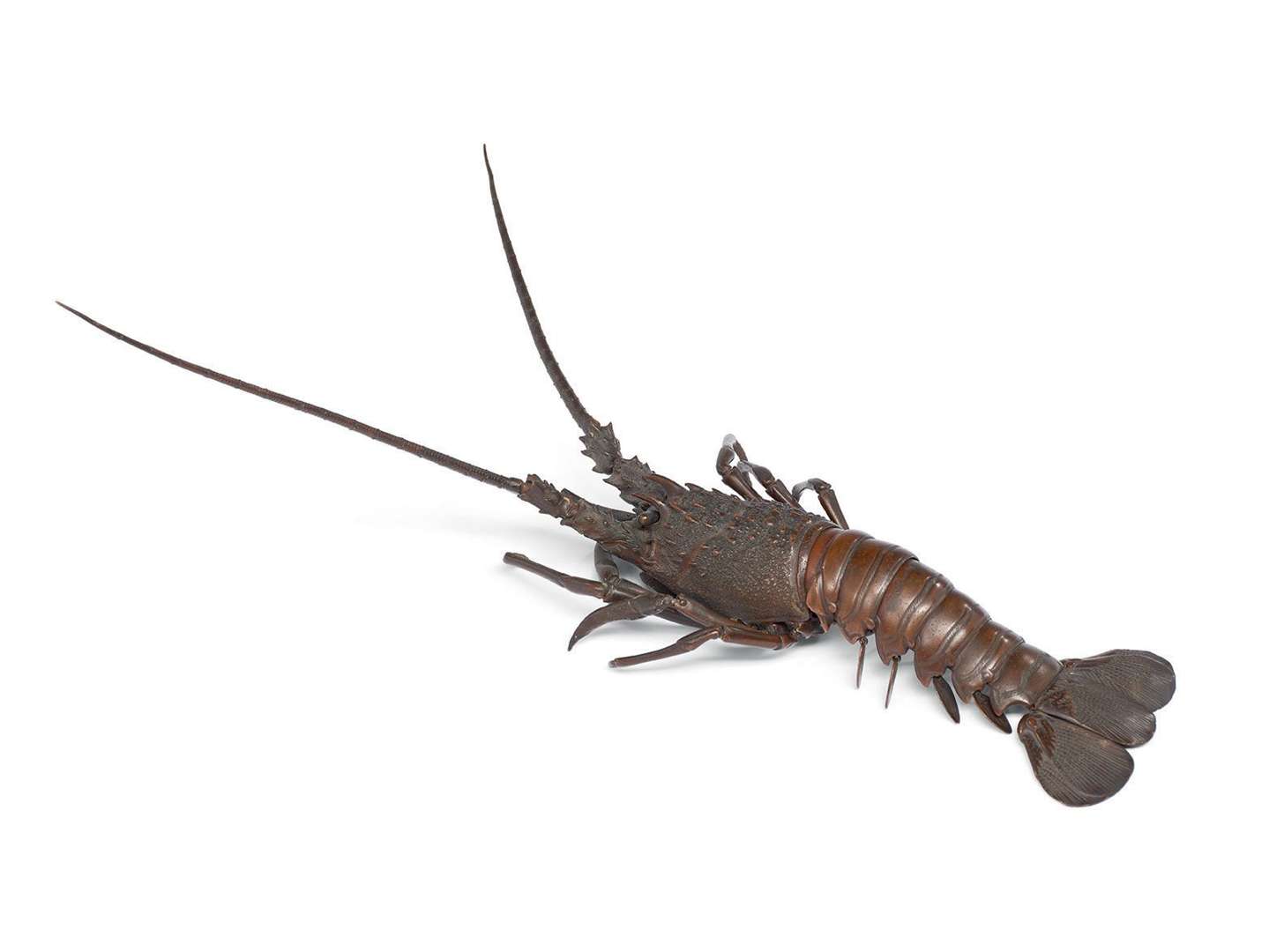 Figurant une langouste articulée. Le crustacé traité avec un grand naturalisme.