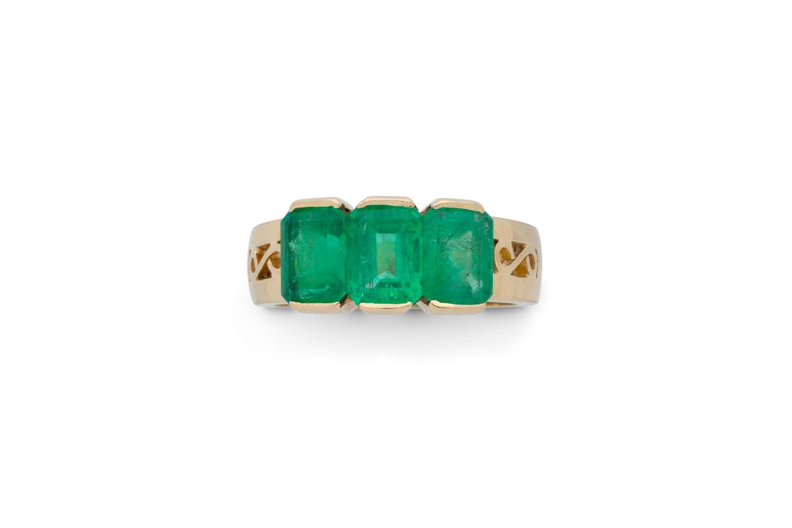 Trois émeraudes rectangulaires à pans coupés