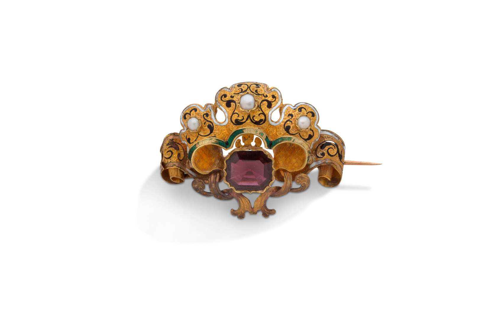 Grenat, perles, émail