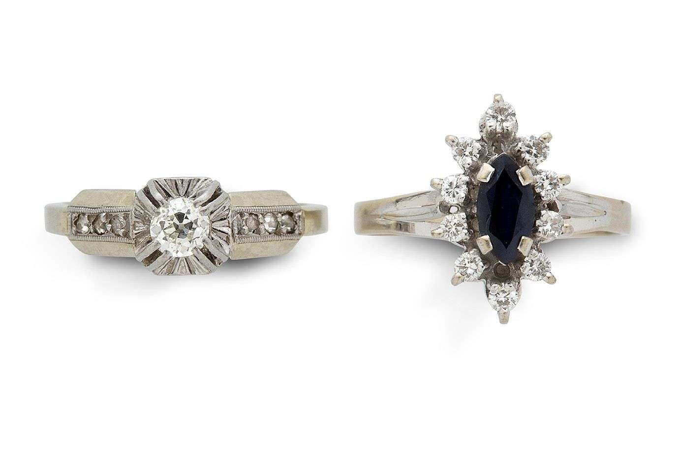 -Bague, saphir et diamants taille brillant, or 18k (750). Td. : 56 - Pb. : 3.7 gr