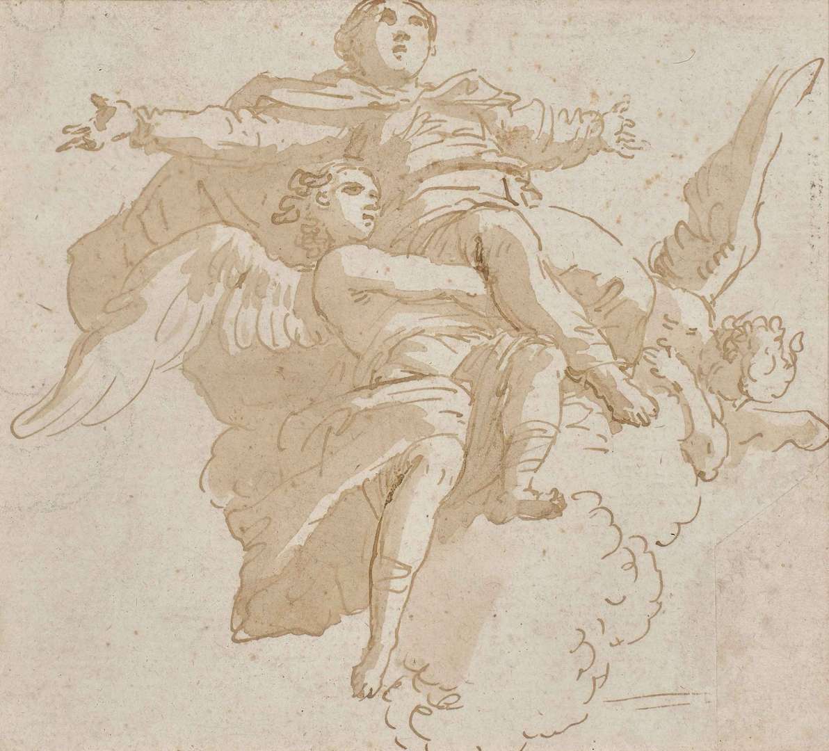 Plume, encre brune et lavis brun