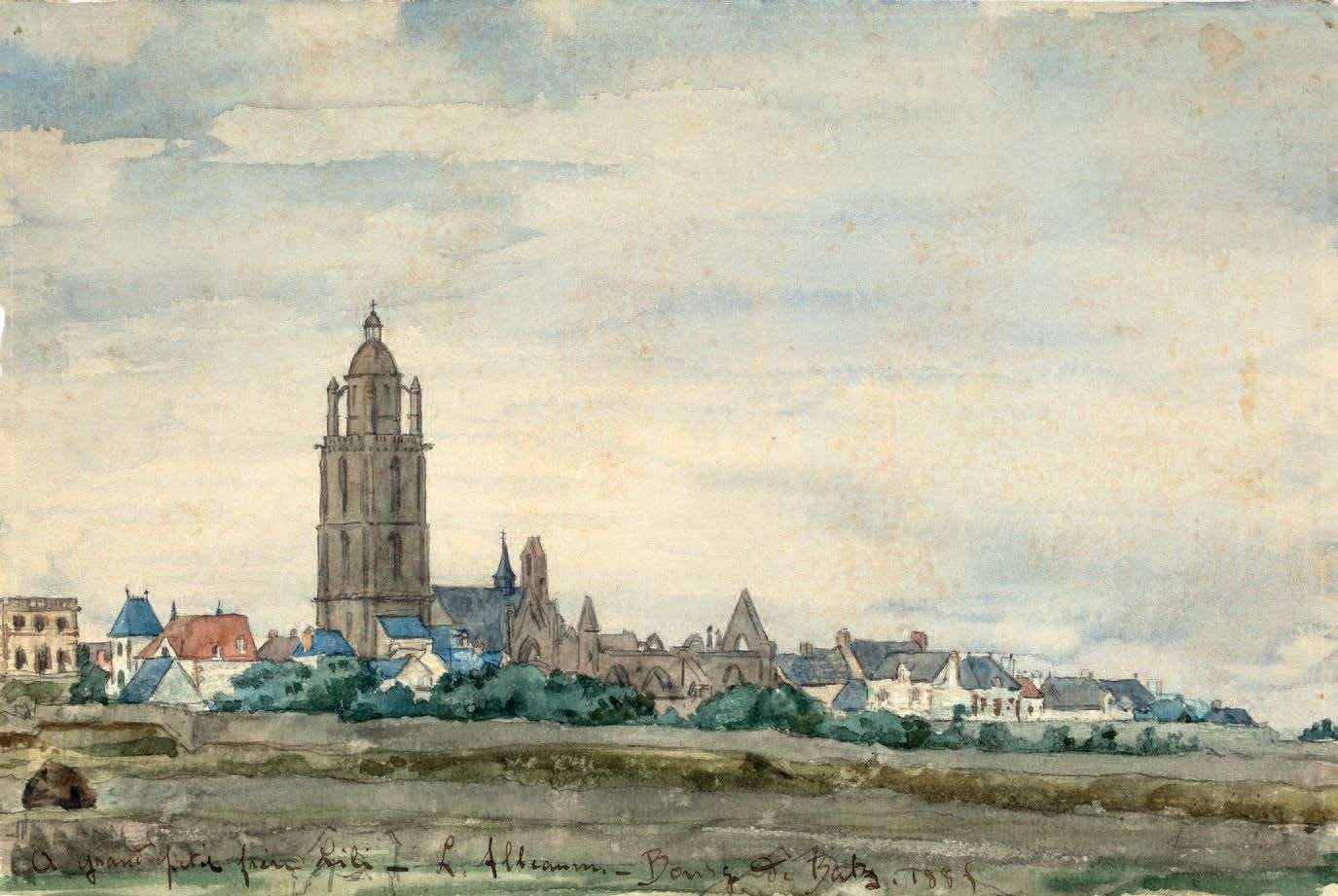 Village of Batz, watercolor, dedicated, signed, located and dated lower left