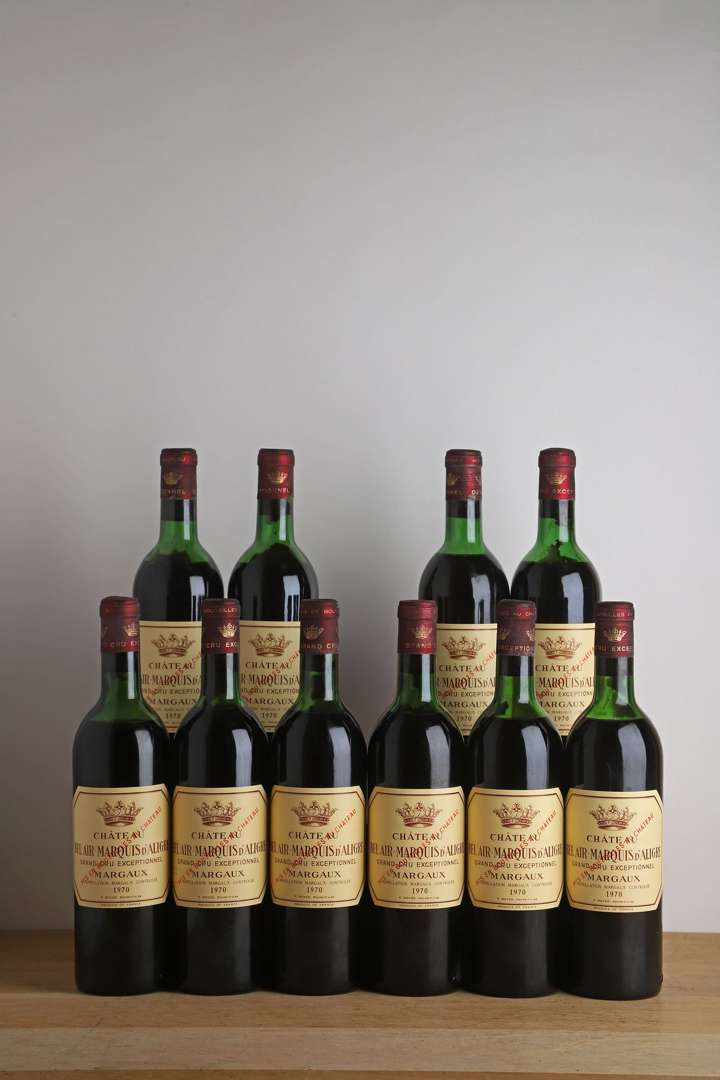 10 B CHÂTEAU BEL AIR MARQUIS D'ALIGRE (Caisse Bois d'origine de 12 remise à l'acquéreur) (M.E. ou mieux| c.s.) - 1970 - Margaux