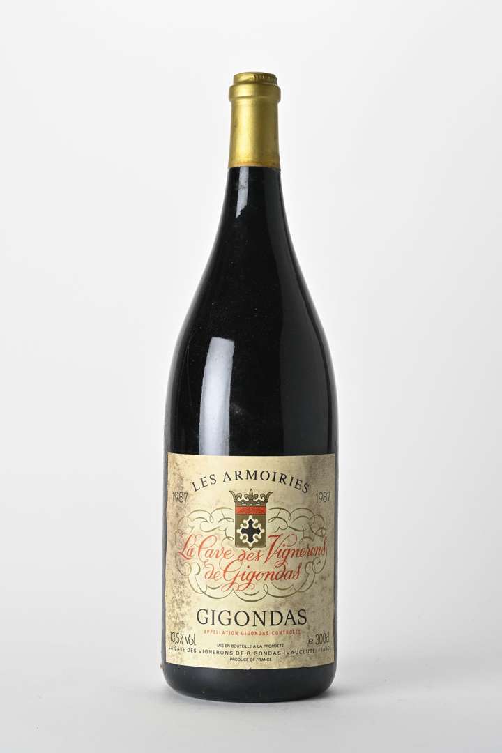 1 JERO GIGONDAS LES ARMOIRIES (Caisse Bois d'origine) (3 cm| e.t.h.) - 1987 - Cave des Vignerons de Gigondas