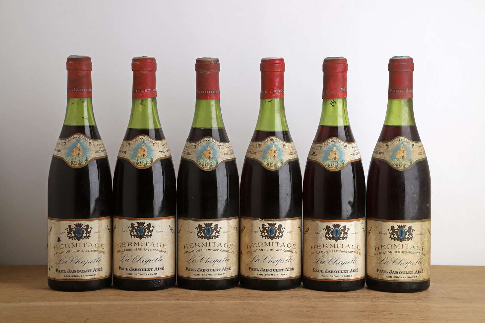 6 B HERMITAGE LA CHAPELLE (4 à 3,5 cm ou mieux et 2 à 4 cm| e.t.h. dont 1 e.a| c.s. dont 1 avec traces de coulures anciennes| 1 suintante) - 1967 - Jaboulet Ainé