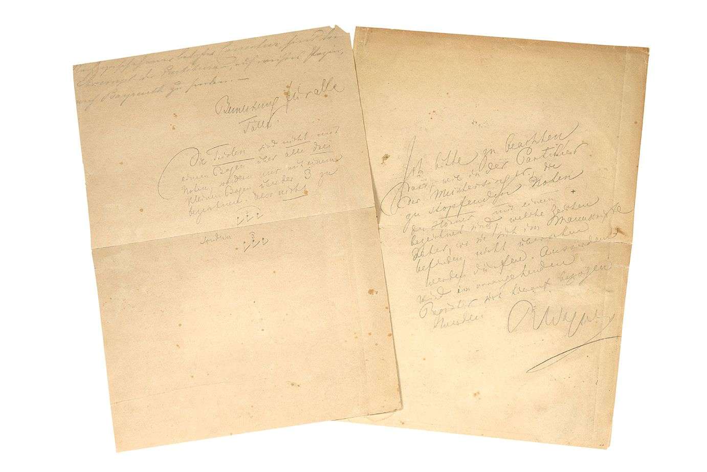 P.A.S. «RWagner» et P.A., [vers 1868] | au crayon sur 2 pages in-4 au dos d'épreuves musicales | en allemand.