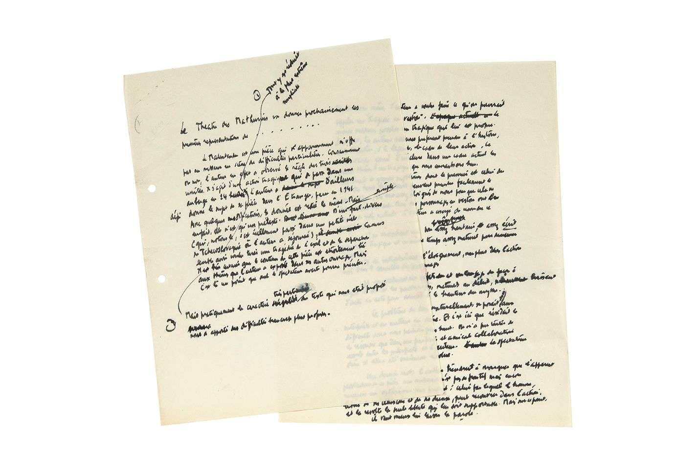 MANUSCRIT autographe, [1944] | 2 pages in-4, avec ratures et corrections (trous de classeur en dehors du texte).