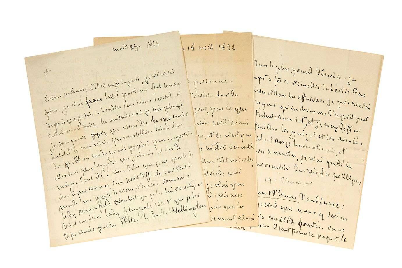 2 L.A., Londres 18-23 avril 1822, à la duchesse de DURAS | 5 et 3 pages in-4.