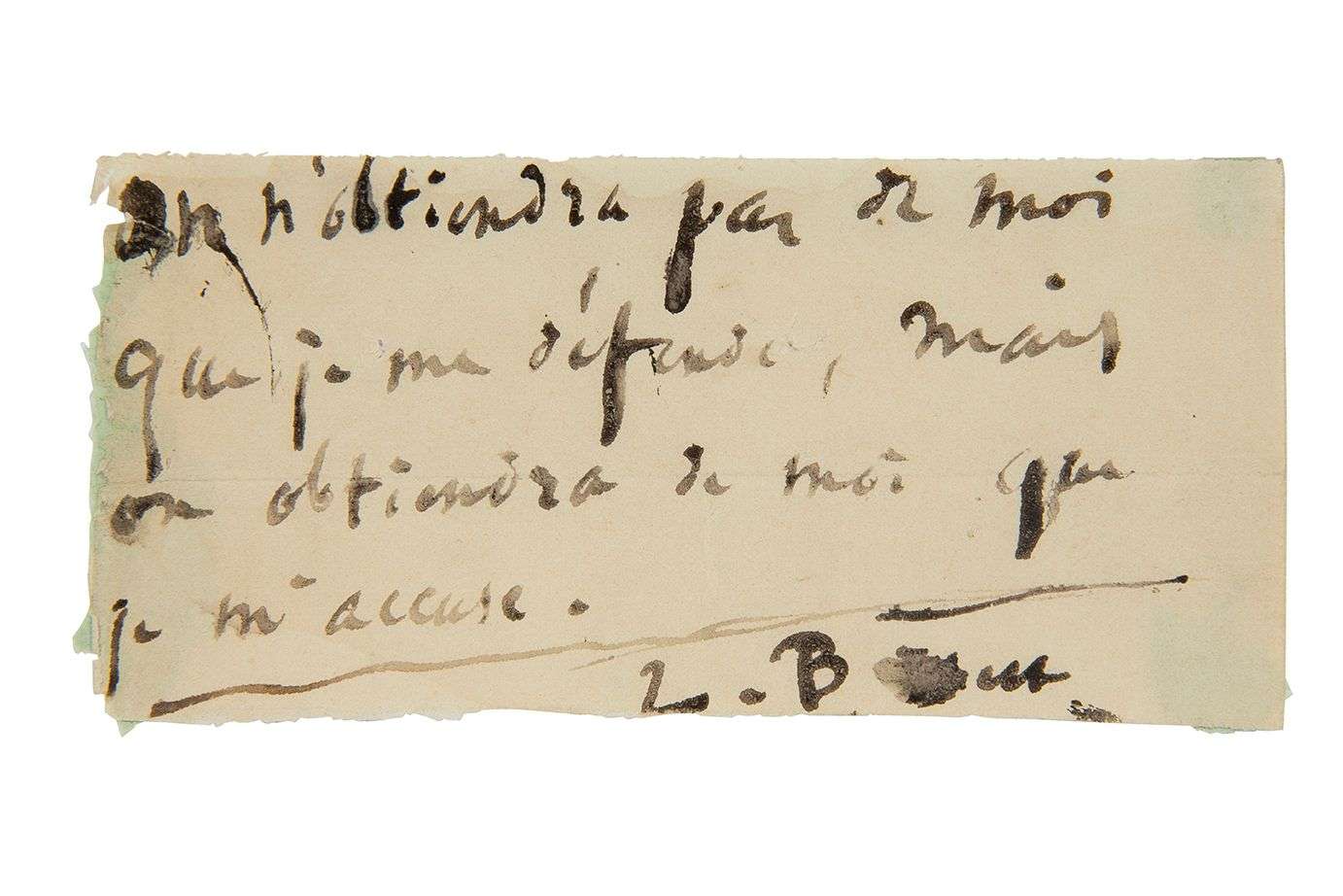 Brouillon pour un projet de discours ou de missive. «On n'obtiendra pas de moi que je me défende, mais on obtiendra de moi que je m'accuse.»