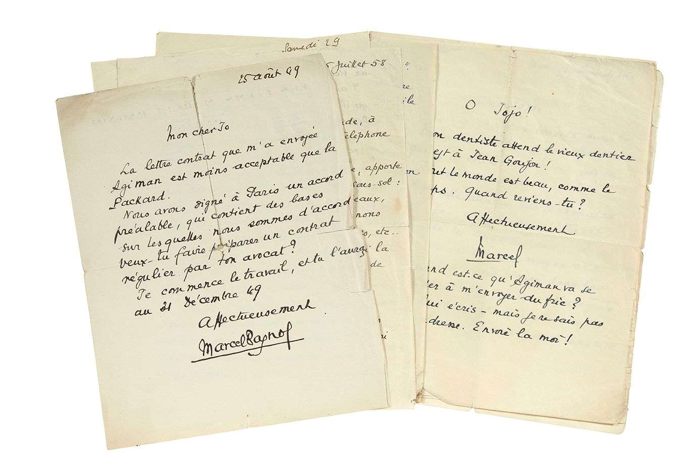 6 L.A.S. «Marcel» (une561 «Marcel Pagnol» et une «MP»), 1949-1969, à Joseph MARTINETTI | 7 pages et demie in-4 (quelques légers défauts).