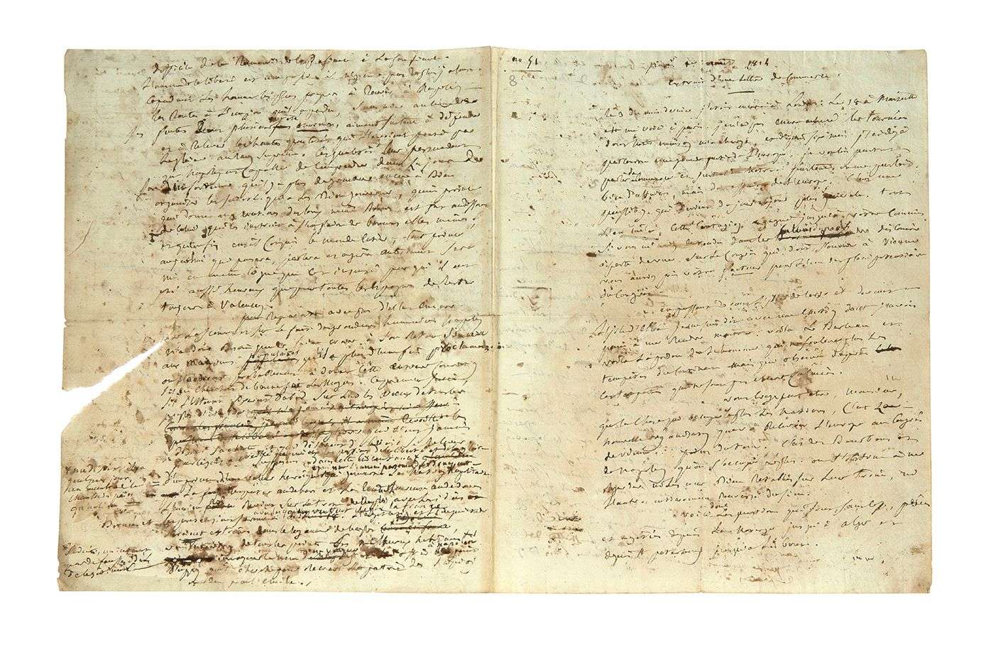 MANUSCRIT autographe, Extrait d'une lettre de commerce, Paris 1er août 1814 | 4 pages in-4 avec ratures et corrections (mouillures et petite déchirure).
