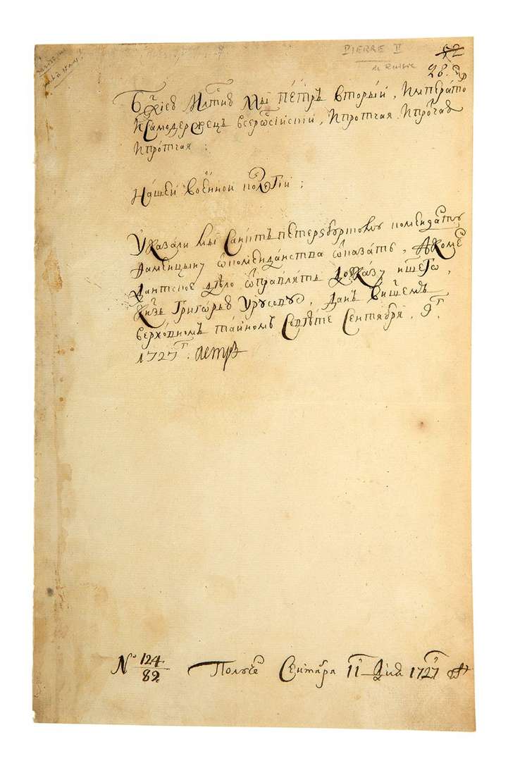P.S. «Пemтр », 11 septembre 1727 | 1 page in-4 | en russe.