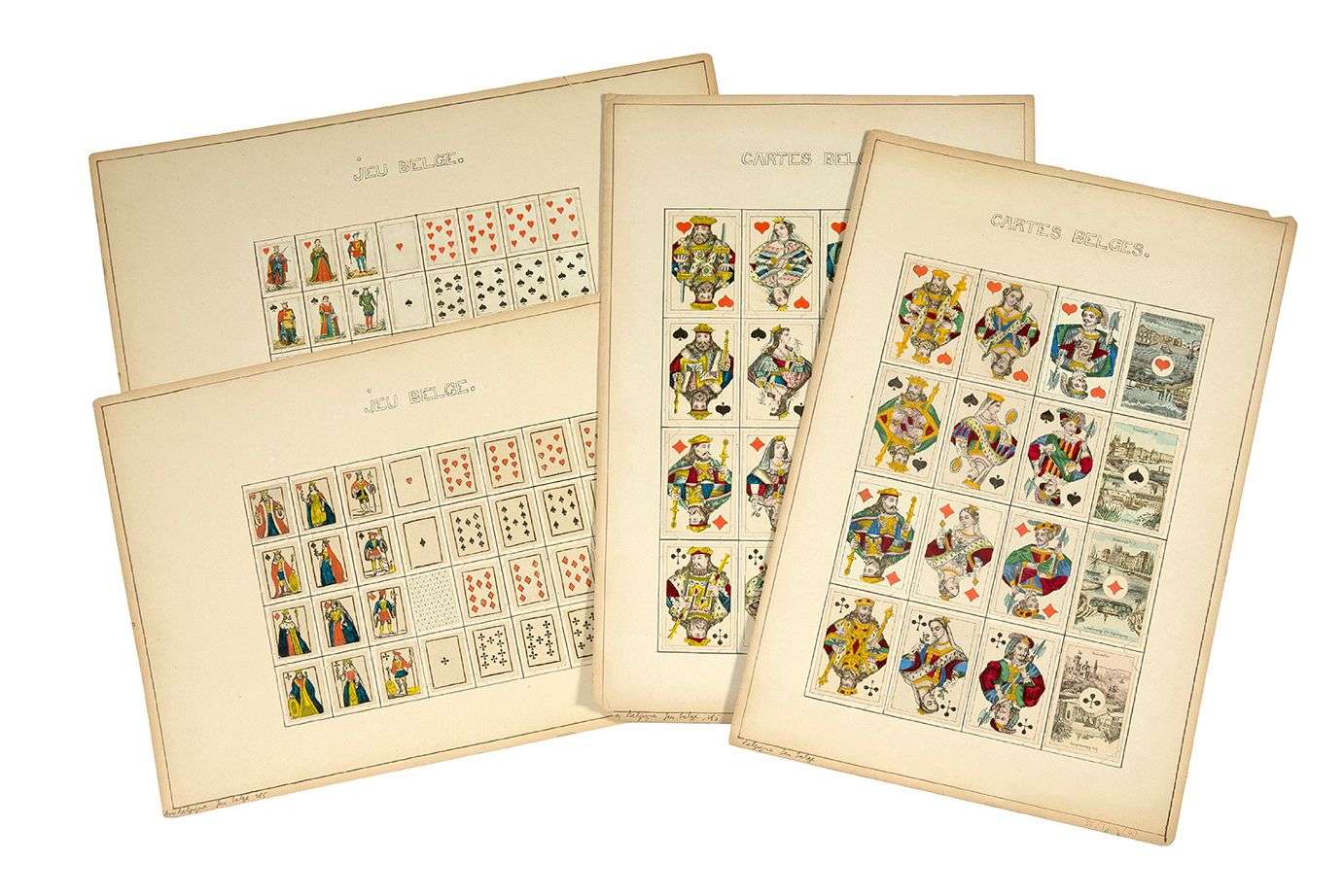 - Jeu Belge de Léonard Biermans, 16 cartes (fin XIXe siècle), illustrations de villes allemandes sur les As sauf As de coeur.