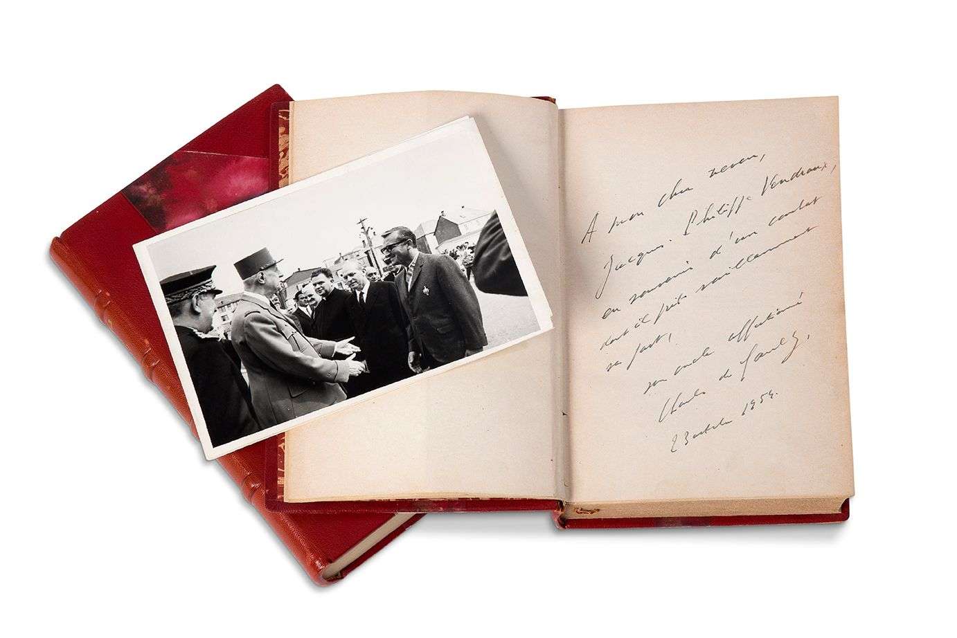 Envois autographes signés du général de Gaulle, à son «cher neveu, Jacques Philippe Vendroux, en souvenir d'un combat dont il prit vaillamment sa part [...], 23 octobre 1954» (tome 1) | au même, «affectueusement, 29-6-56» (tome 2) | le tome 3 porte seulement la signature du général avec la date de 20-1-60.