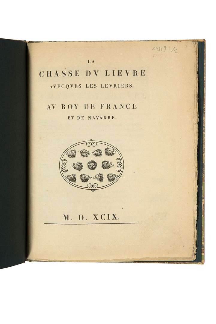 La chasse du lièvre avecques les lévriers. Au roi de France et de Navarre. Paris, Jannet, 1849. Petit in-4, cartonnage marbré postérieur, titre doré sur pièce rouge au plat sup. non rogné.