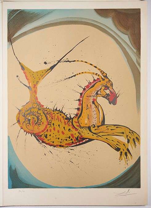 Ouvrage illustré de 13 lithographies originales de Salvador Dali : un frontispice et 12 planches illustrant les signes du Zodiaque. Les 12 planches portent la signature autographe de Dali.