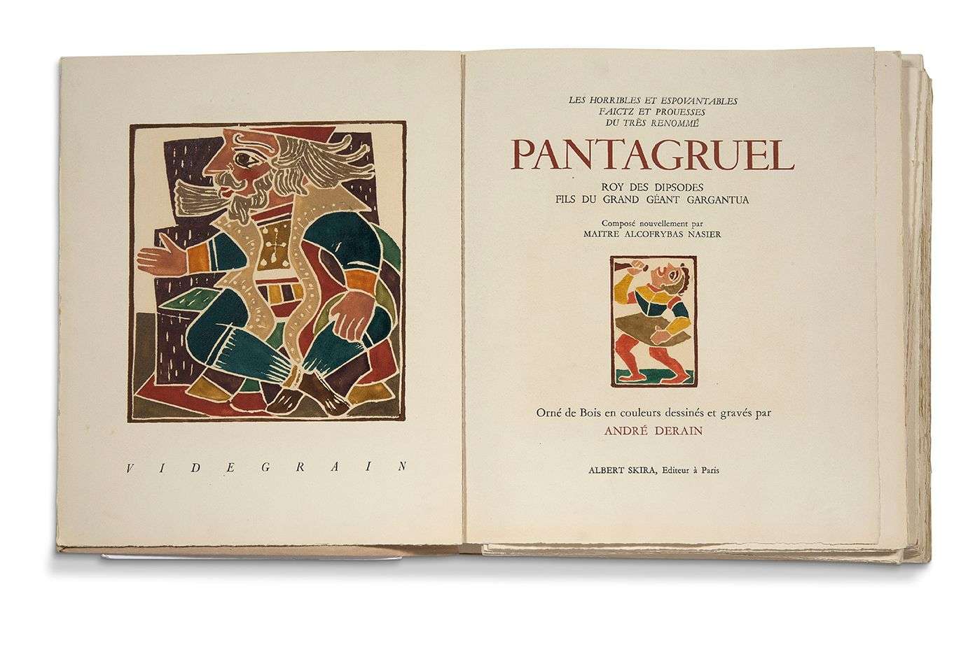 Édition illustrée de 179 bois en couleurs dessinés et gravés par le peintre André Derain (1880-1954) : 21 à pleine page et 122 dans le texte, dont les culs-de-lampe et 34 lettrines.