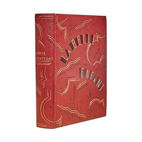 La belle enfant ou l'amour à quarante ans. Paris, A. Vollard, 1930. In-4, maroquin rouge brique, dos lisse portant le nom de l'auteur doré, plats décorés de compositions dans le style de Dufy réalisées aux filets noir et or, avec au plat sup. le titre mosaïqué, contreplats bordés de maroquin rouge, doublures de maroquin brun, avec au centre une figure aux filets noir et or, gardes de satin brun, tête dorée, chemise demi-maroquin vert bronze à bandes, étui [Gruel] (dos de la chemise passé, légers frott. à l'étui).
