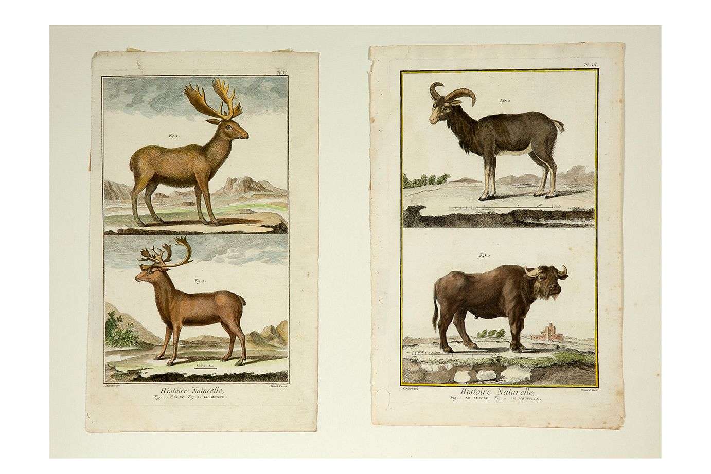 En couleurs animalières d’après Huet,Martinet, de Sève et 8 gravures d’après Goussier sur la chasse.