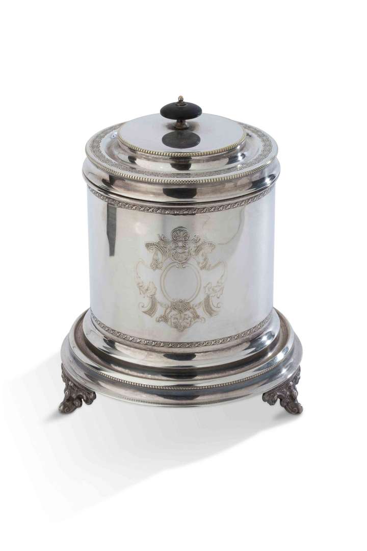En métal argenté de forme circulaire.