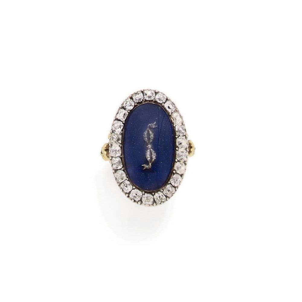 An enamel, diamond, glass, gold and silver ring, 19th Century
