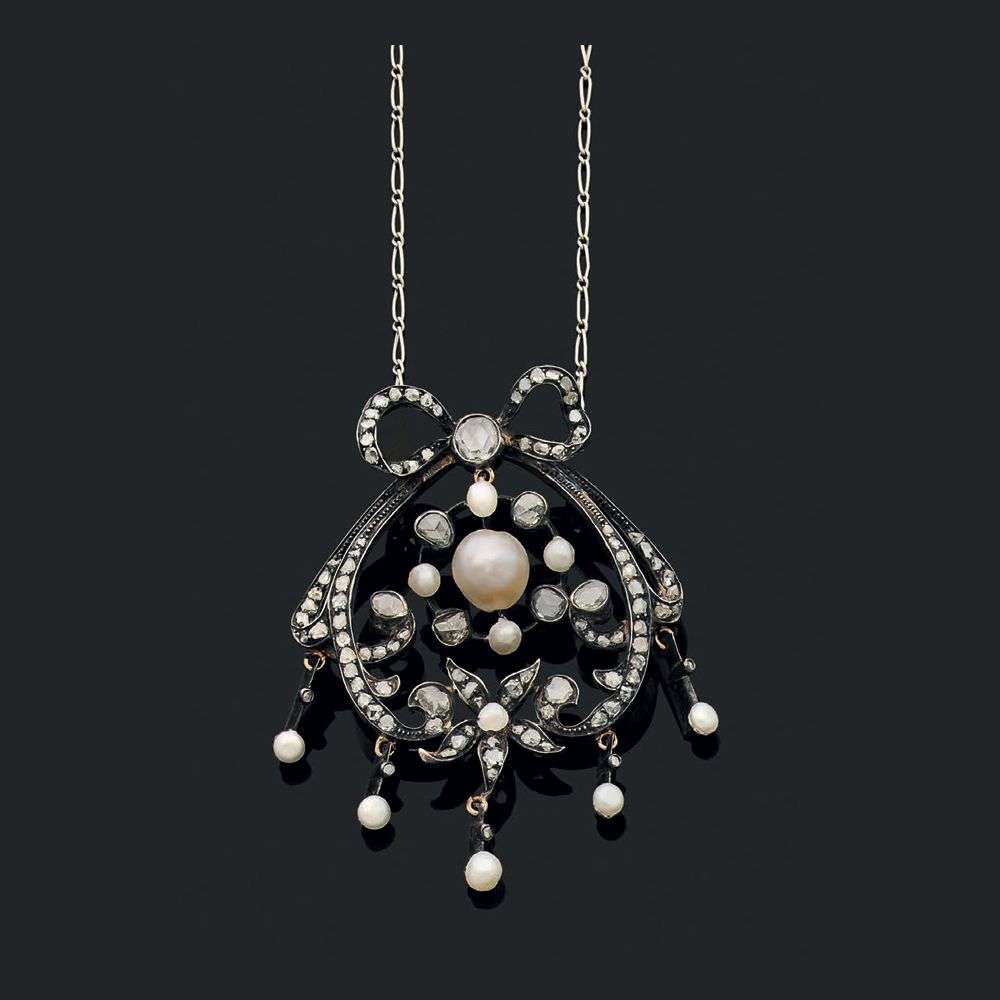 Diamants taille rose, soufflure de perles, perles fines